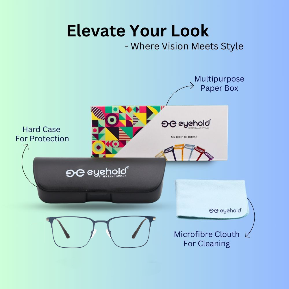 eyehold Blue Square Full Rim Magnetic Fleek 3-in-1 Clip-On Metal Unisex Glasses are designed for everyday comfort with a fresh, modern look. The blue square frame adds a stylish touch while suiting both men and women. Made from lightweight metal, these glasses come with 3 magnetic clip-on lenses that let you switch easily between work, outdoor use, and night driving.