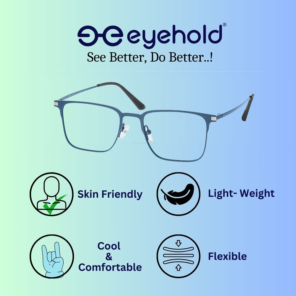 eyehold Blue Square Full Rim Magnetic Fleek 3-in-1 Clip-On Metal Unisex Glasses Key Features: